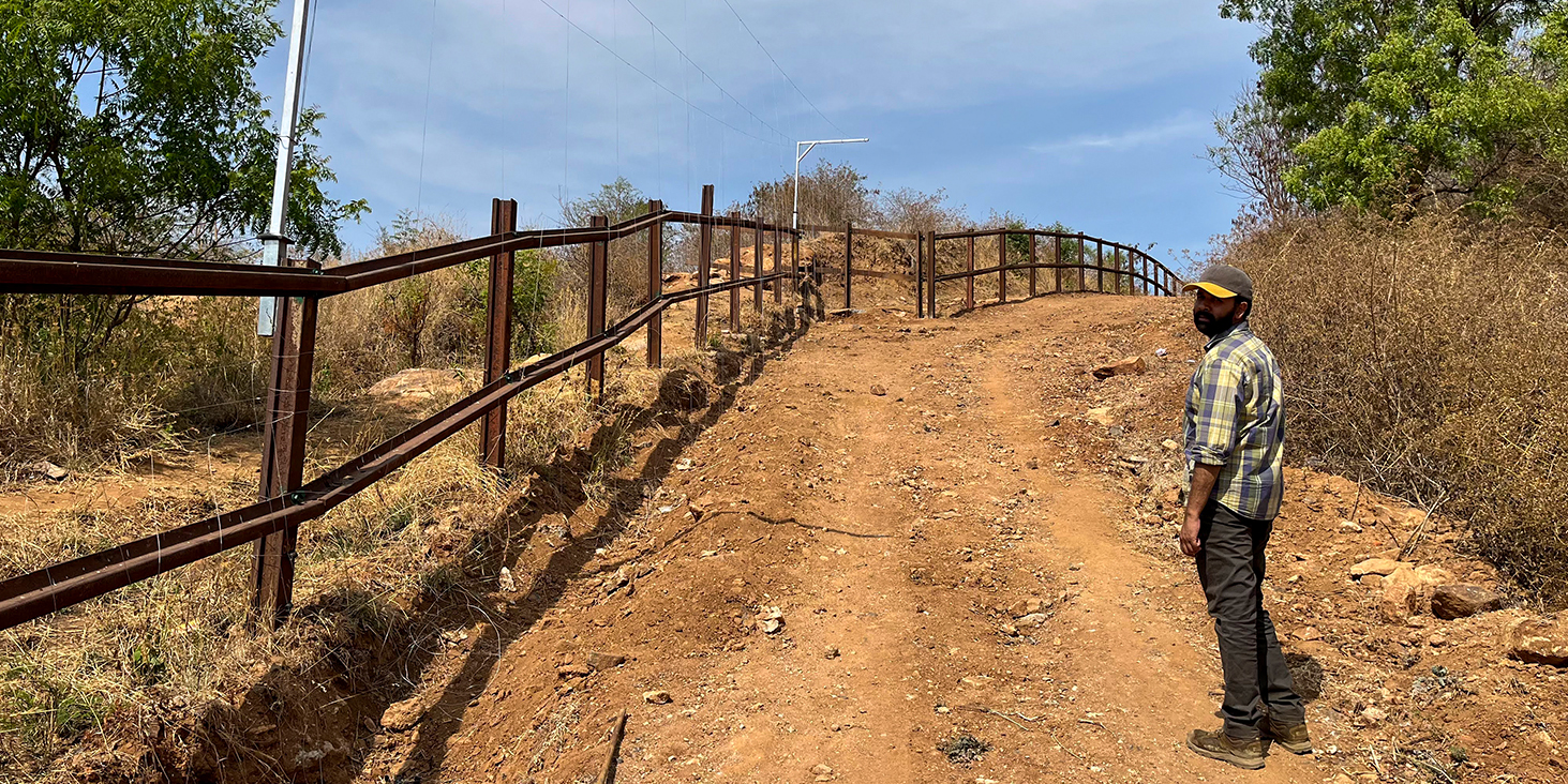 - Following the collaboration with the Ramanagara Forest Division, where three such fences were first set up to test the effectiveness of the fence in protecting crops, several farmers in the region stepped forward to set up these fences around their own farms. While some farmers could afford the fence on their own, others were assisted through the project and the Forest Department. This was done by providing them with solar sets that made up almost half the cost of the total fence. Each solar set contained a battery, energizer, solar panel and the required wiring.